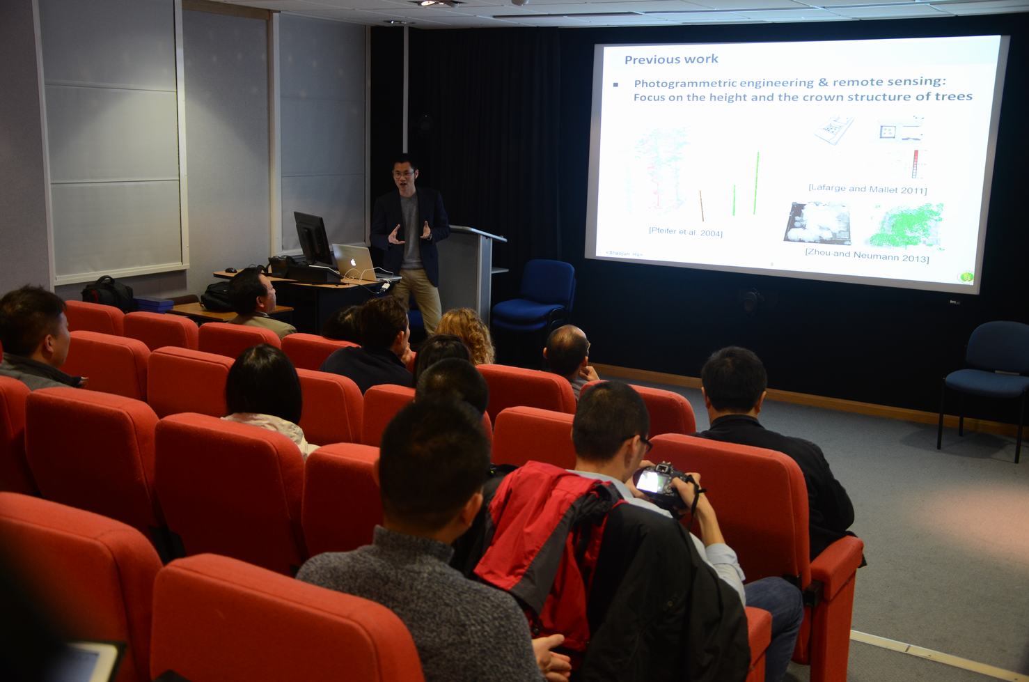 在传媒美女直播实验室,何东健教授介绍了学校和智能媒体处理团队的情况,及正在承担的国家“863”计划课题和国家自然科学基金等课题的研究进展及相关成果。胡少军副教授做了题为“Efficient Reconstruction of Trees from Large-scale SparsePoint Clouds”的报告,并与在场科研人员进行了深入讨论与交流。王美丽博士介绍了博士毕业后在美女直播 教学和科研等各方面取得的进展与成绩,并获得了张建军教授的肯定与赞赏。
