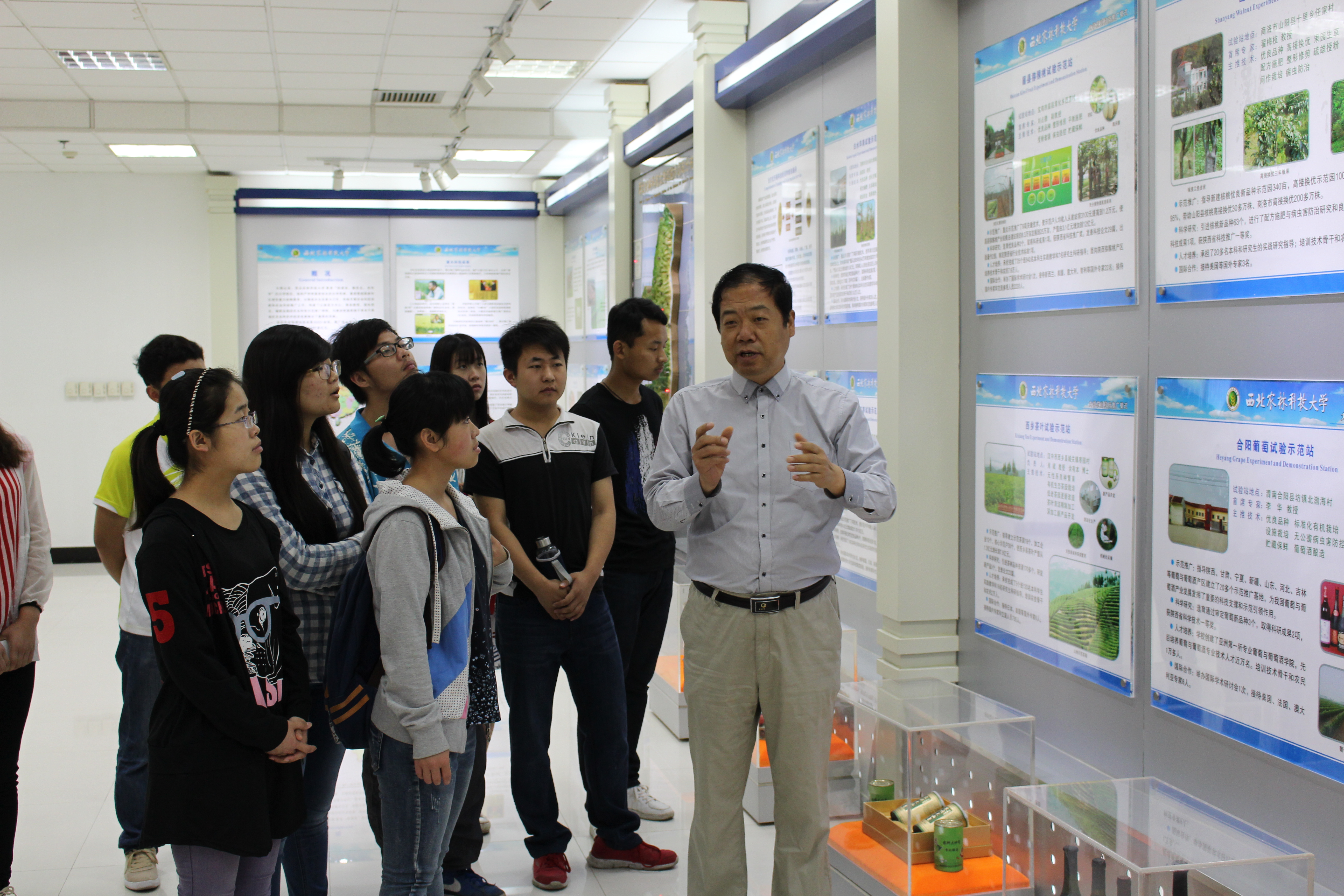 在推广展室,一排排凝聚着无数心血和汗水的、与人们生活息息相关的农作物种子,一盏盏撒播在希望田野上的明灯代表着我们一线辛勤的科教人员,农林新品种、园艺、畜牧业、水土保持等所取得的成绩一一展现在学员们眼前,彰显着“经国本、解民生、尚科学”办学宗旨,推广处负责人认真讲解了我校农业科技推广新模式及取得的成效,特别是讲到农业科技远程监测系统是由信息人研发时,信管专业143班程镝说:“我们学校为国家农业文明发展做出了不可磨灭的贡献,亲眼看到信息技术在农业生产中的应用,感悟到科学的神奇力量,更激励我努力学习科学文化知识,掌握专业技术并与实践结合一定有所作为。”