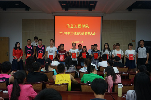 5月13日,我院2015年校田径运动会表彰大会顺利召开,大会对先进班集体、优秀运动员、先进工作者、优秀通讯员等做出表彰。美女直播党委书记宋西德,党委副书记何卫军,体育辅导员杜养军,团工委书记党艳东及各年级辅导员参加了此次大会,大会由王淑珍老师主持。