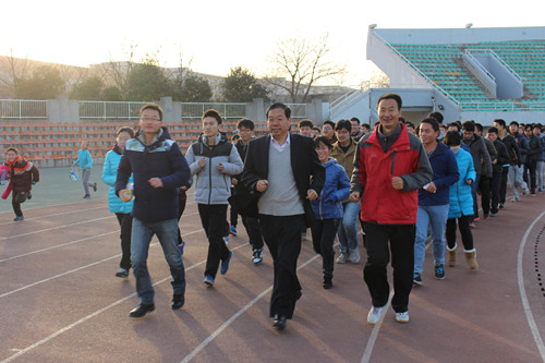 首先,宋西德教授做了长跑前的动员讲话,他希望同学们能积极参与体育锻炼,提高自身身体素质,强健体魄,践行“美丽中国梦”。随后杜养军老师和徐立国老师对同学们进行了思想动员和体育运动技能指导及冬季长跑中应该注意的事项。最后,党艳东老师致词并宣布冬季长跑活动开始。紧接着在宋西德书记、杜养军老师、徐立国老师、党艳东老师的带领下,同学们绕田径场慢跑五周,进行了第一次的长跑运动。为深入开展阳光体育冬季长跑活动,信息美女直播特制定活动实施方案,坚持学生长跑活动,落实阳光体育系列活动。