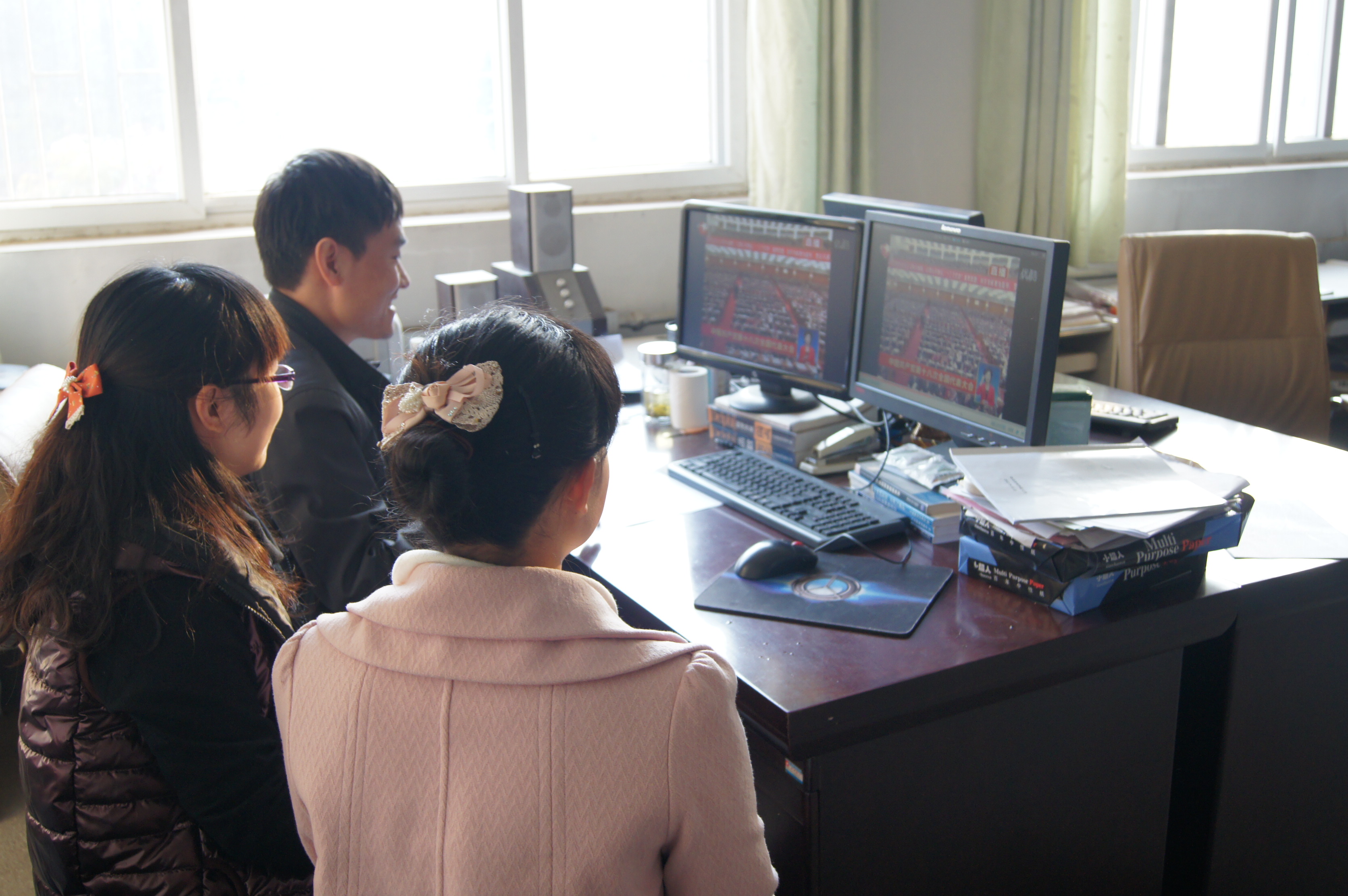 下午,美女直播通知由于上课没能及时收看十八大开幕式的教职工自主学习,补上这重要的一课。