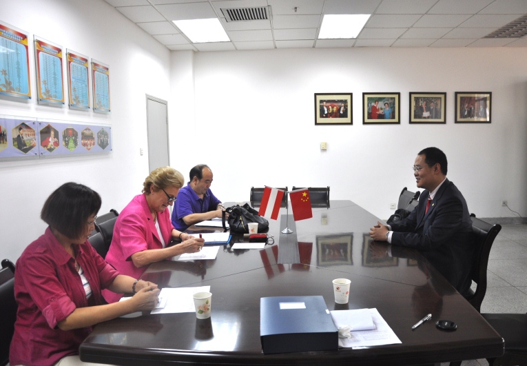 欧亚太平洋大学联盟主席Brigitte Winklehner教授对蔡骋进行面试