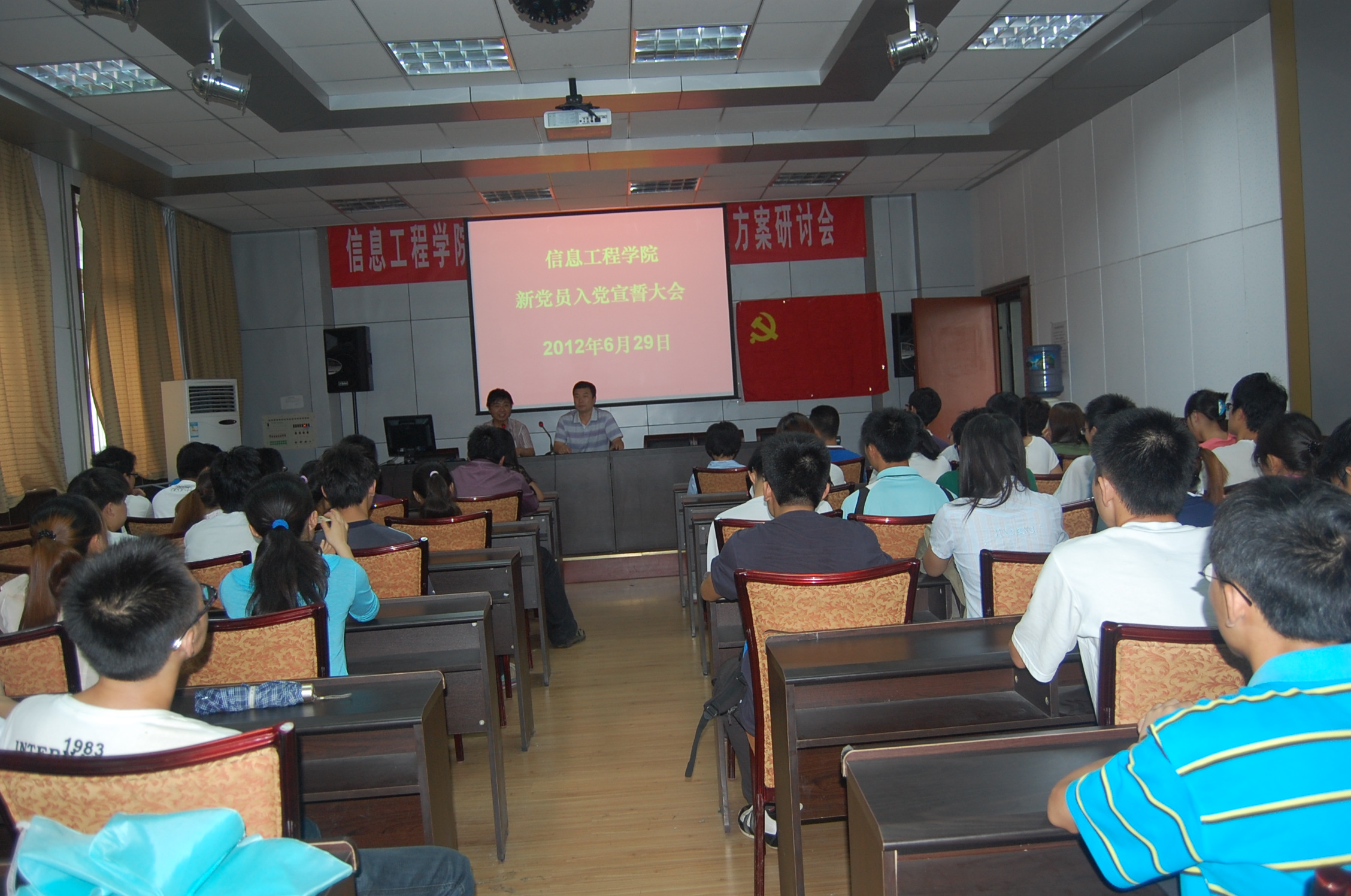 6月29日下午,美女直播隆重举行了预备党员入党宣誓大会,美女直播党委副书记何卫军、各学生党支部书记、辅导员以及新发展的85名预备党员参加了宣誓大会。