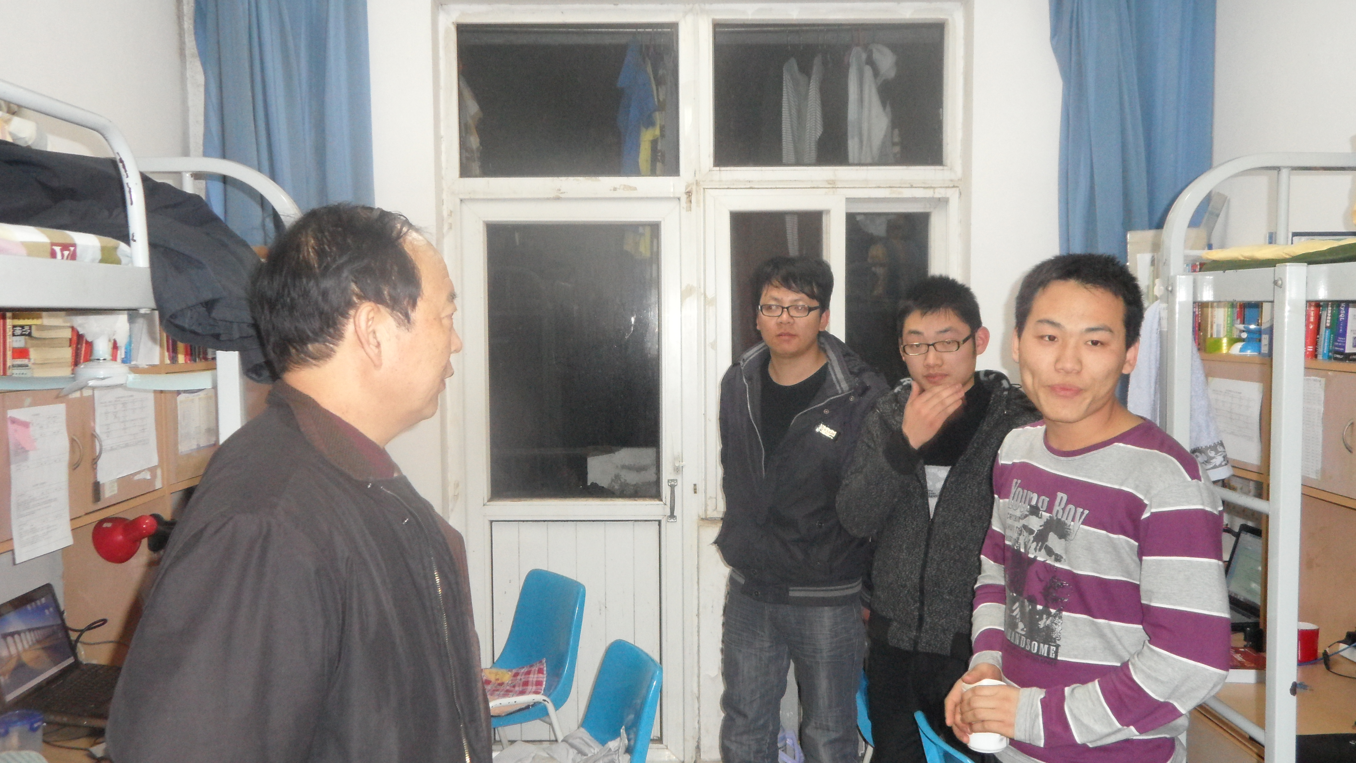 当晚19:30,院党委书记樊世明、副院长张阳带领2008、2009、2010级各班班主任深入本科生宿舍,党委副书记何卫军、副院长来智勇深入研究生宿舍,2011级各班班主任深入自习室,了解学生的思想动态,倾听学生的建议与意见。院领导对学生提出了殷切期望,希望他们营造良好的学习氛围,维持宿舍的和谐安宁,使自己保持心情舒畅,积极投身到学习活动及体育锻炼中去。并对宿舍环境卫生中的一些问题提出了批评指导意见,希望学生重视宿舍环境,对自己的身体健康负责。学生纷纷表示切实感受到了领导的关心和爱护。