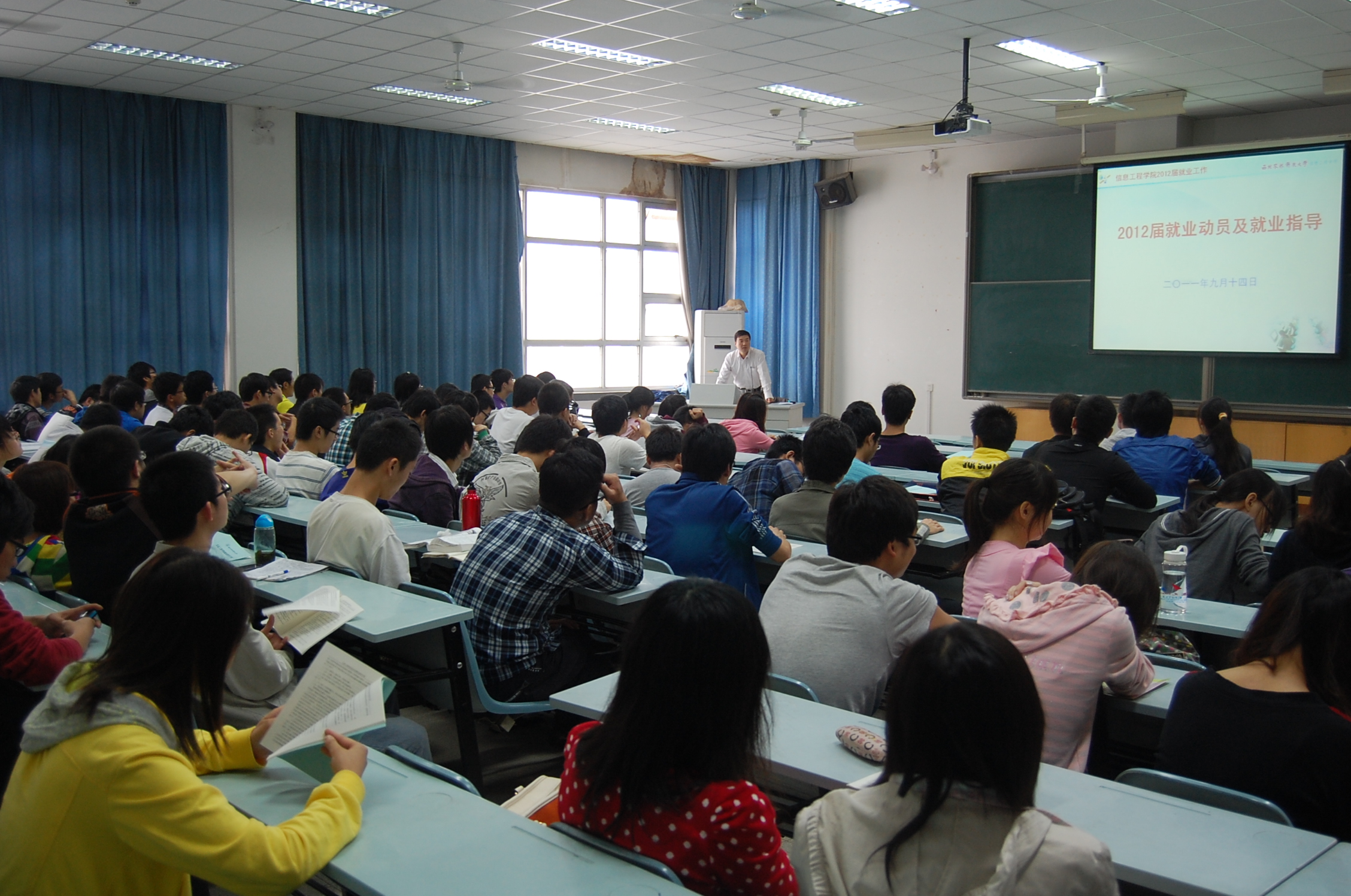 9月14日,美女直播召开了2012届毕业生就业工作动员会,美女直播党委书记樊世明出席会议并作动员报告,全体毕业生参加了会议。