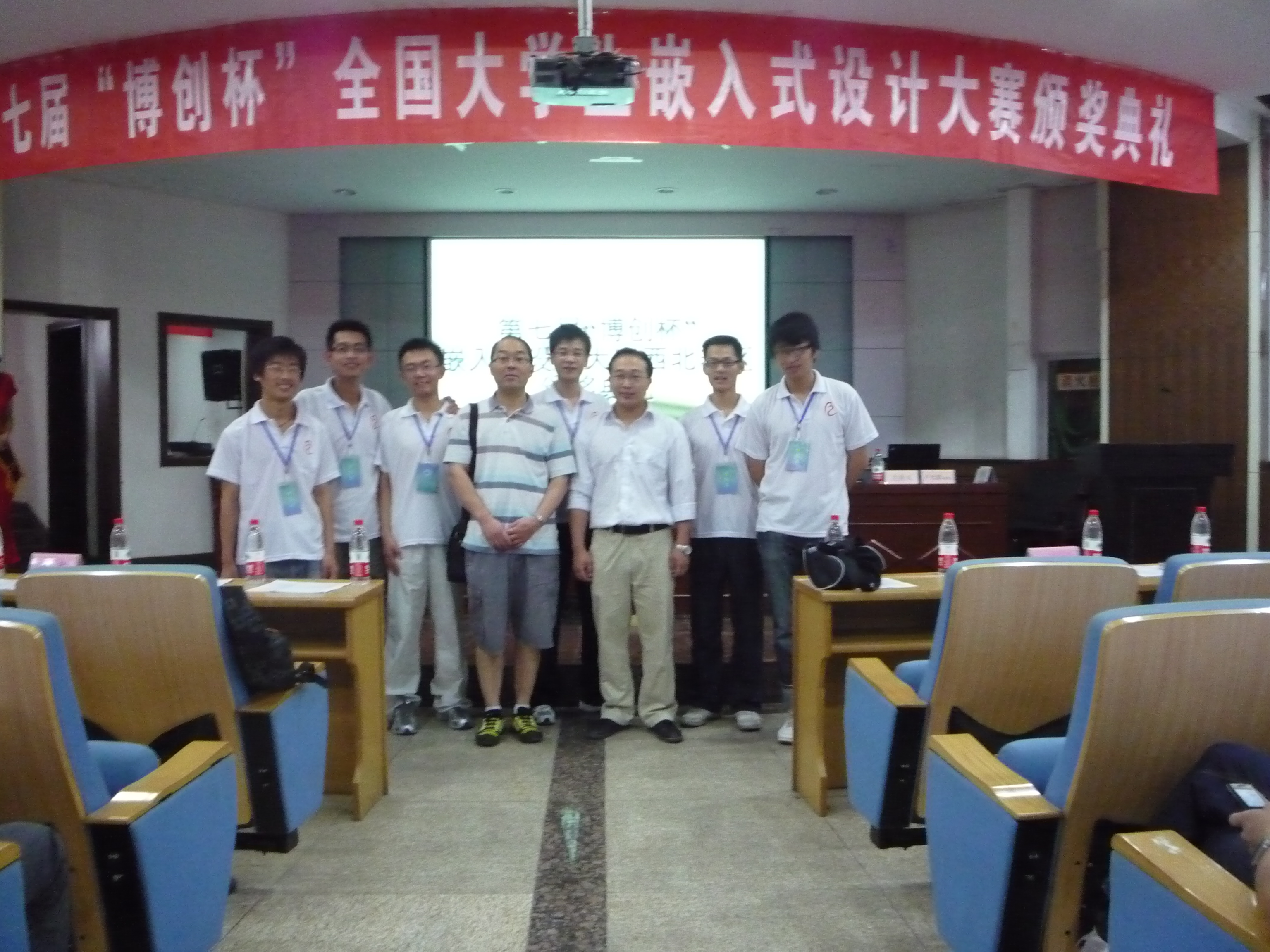 在指导老师张建锋副教授和徐杨副教授的辛勤指导下,参赛队员刻苦努力,扎实钻研,最终在比赛中取得可喜的成绩。其中,张建锋副教授带领小组设计的多模式控制移动机器人系统,利用可视化窗体、语音识别与处理及手机蓝牙技术实现对移动机器人的运动控制;徐杨副教授指导设计的基于手机平台的智能家电控制是利用蓝牙通讯技术,在Linux系统下,研发的可以通过手机蓝牙控制家电的系统,该系统是以手机为操作平台,可以实现智能控制电灯、电风扇、多媒体视频播放器等家电。两支队伍的作品均受到评委老师的一致好评。