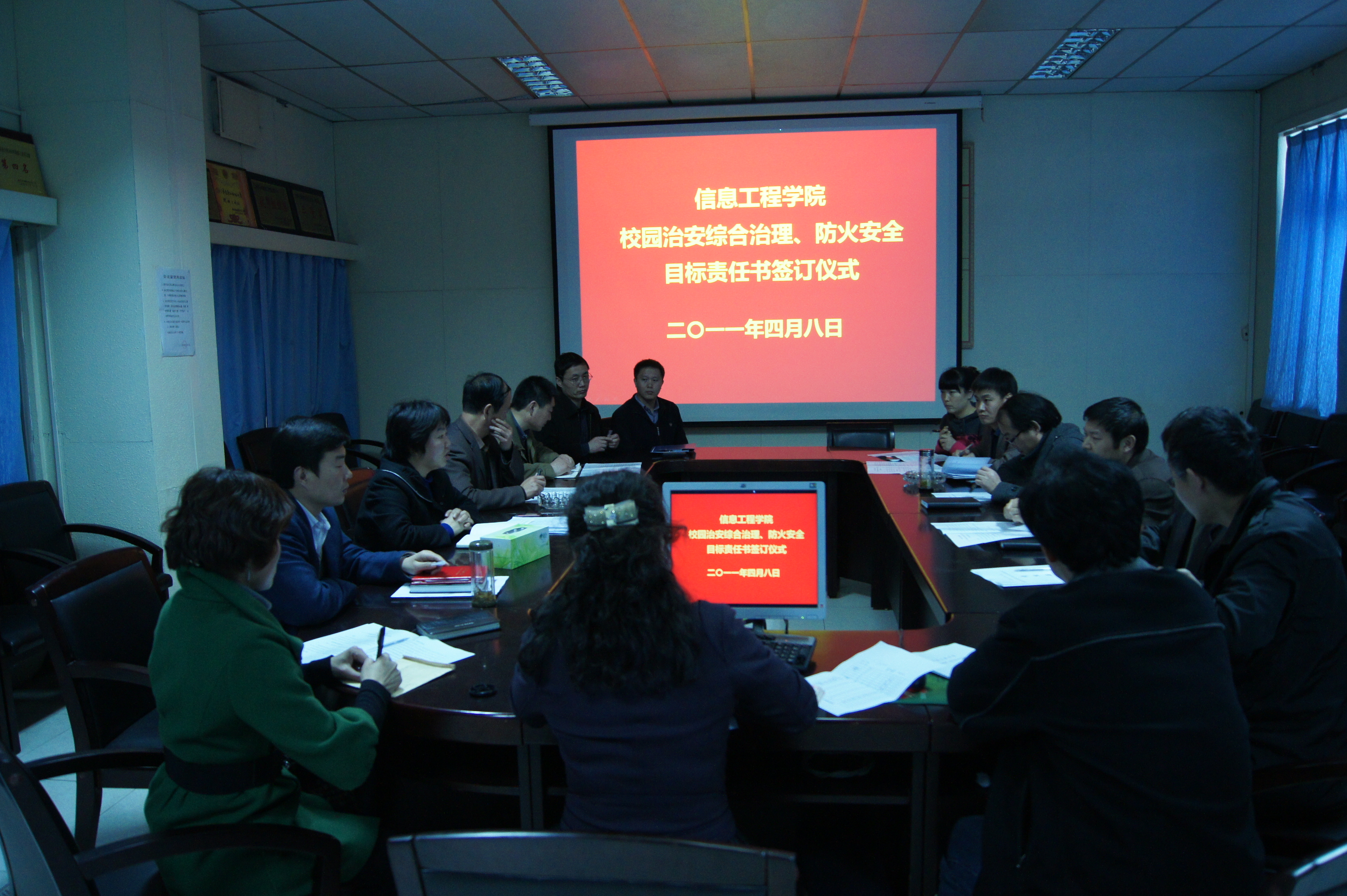 4月8日下午,美女直播召开了2011年校园治安综合治理、防火安全工作专题会议,美女直播党政领导、各系(部、室)主任以及各办公室负责人参加了专题会议,会议由美女直播党委书记樊世明同志主持。