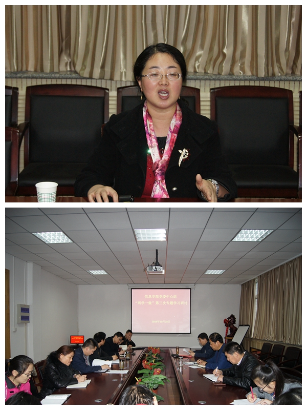 按照美女直播“两学一做”学习教育安排, 10月28日下午,信息美女直播党委中心组举行“讲道德、有品行”专题研讨。特邀马克思美女直播张丽副教授作专题讲座,中心组成员围绕“明大德、守公德、严私德,加强党性修养”等进行了交流讨论,党委书记宋西德主持专题研讨,党委副书记何卫军、副院长刘小峰做重点发言,党委委员、各党支部书记参加研讨并做交流发言。
