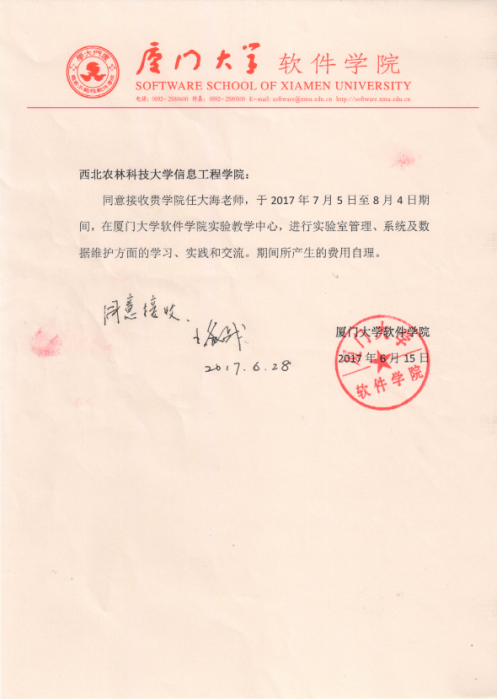 在我学校教务处实验室工作人员外出培训项目的支持下,我受邀参加了厦门大学国家示范性软件美女直播的,7月6日至8月5日为期一个月的《实验室管理、系统及数据维护》培训。