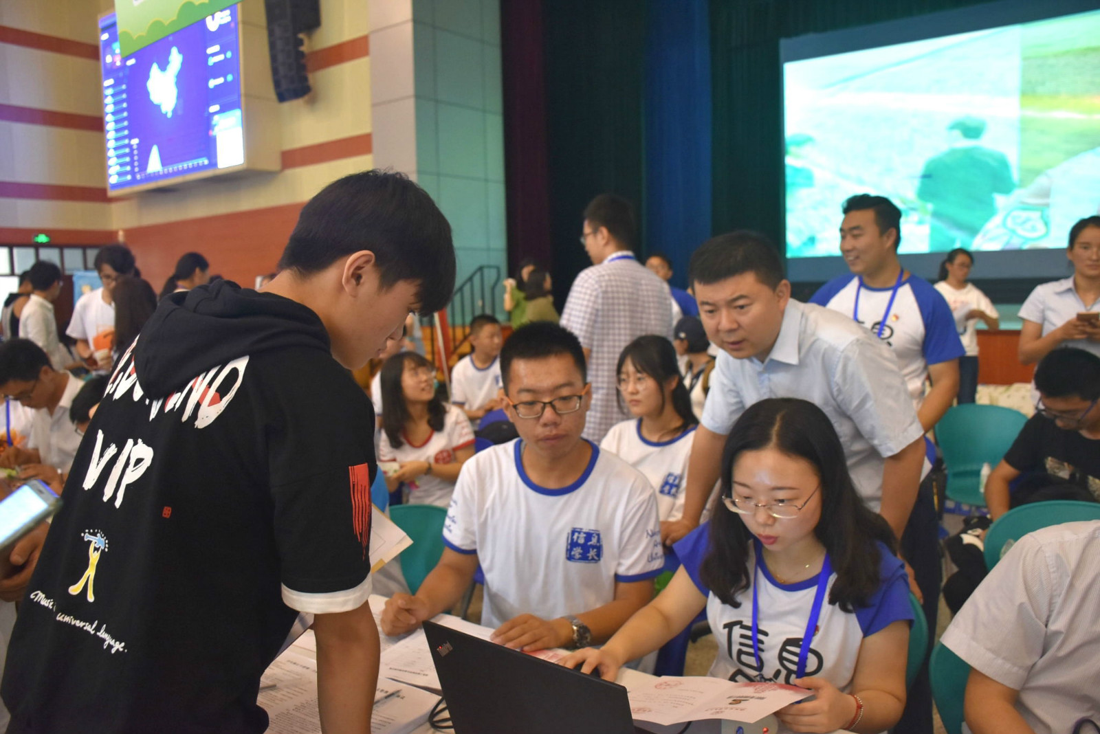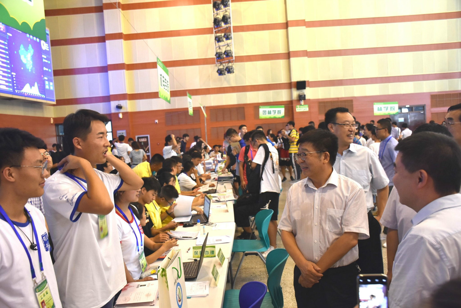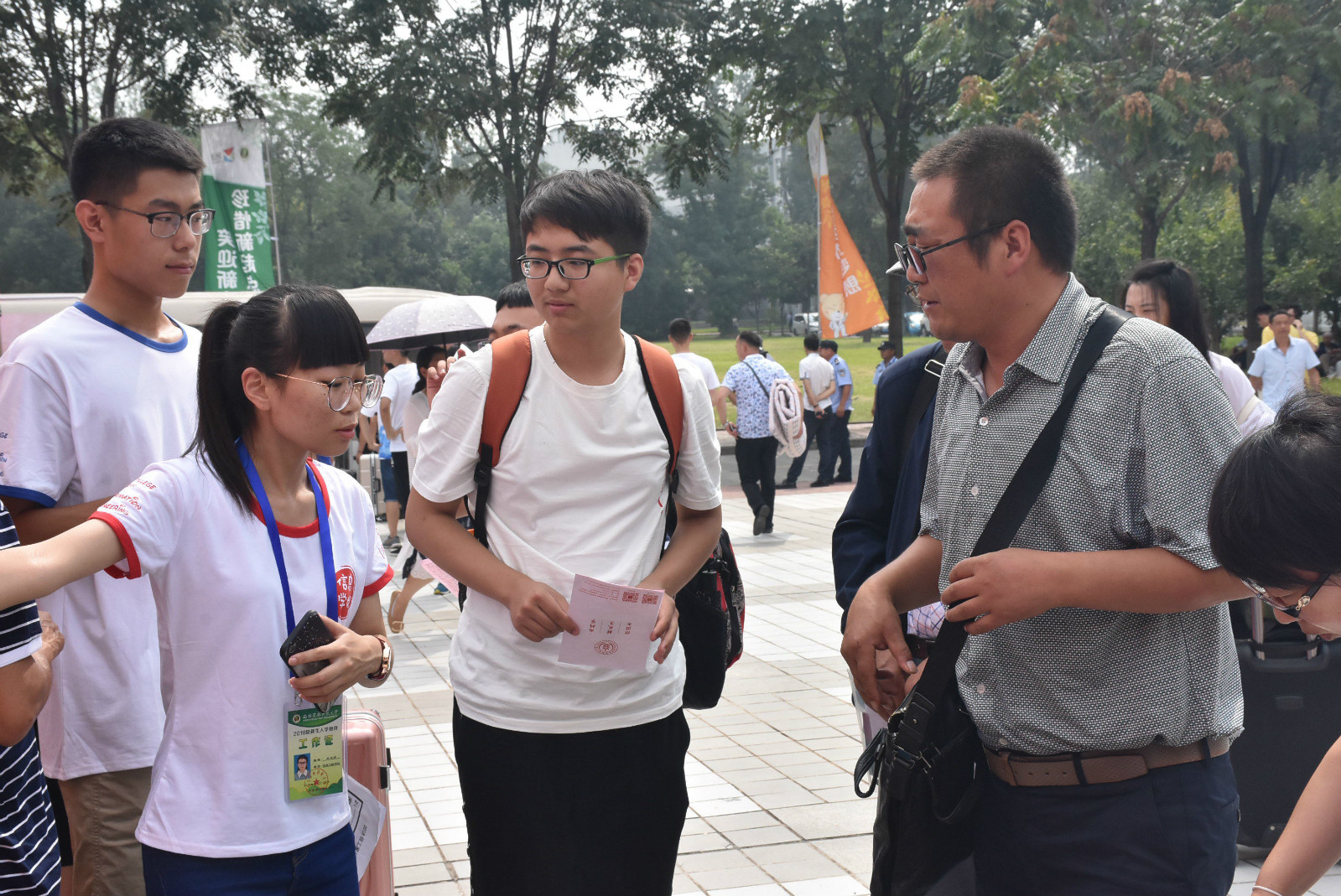 学生志愿者热情接待新生及家长