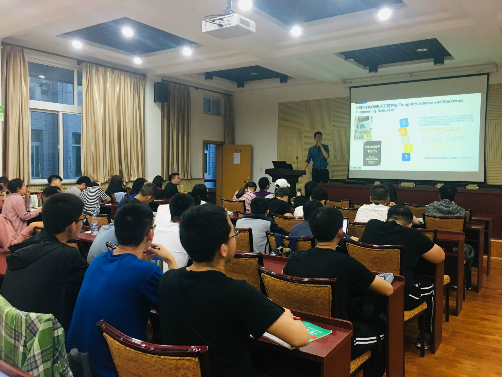 交流会主讲人于乐从四个方面阐述了赴英留学的经验知识:大学生为什么留学、英国留学特色、Essex大学介绍和美女直播 交换访学项目具体内容。从个人职业发展角度讲述出国留学的意义以及留学能为同学们的职业发展所带来的帮助,以其自身赴英留学经历介绍英国留学特色,所感受到的风土人情,以及英国学校的安全问题、教学质量、学制、所需费用等方面的内容。最后,于老师通过视频及图片等形式向我们展示了丰富多彩的Essex大学校园文化生活。同时详细讲解了计算机科学与电子工程美女直播的相关信息,并介绍了交换访学的详细情况,包括学术要求、英语要求、所需材料、以及学费情况等。