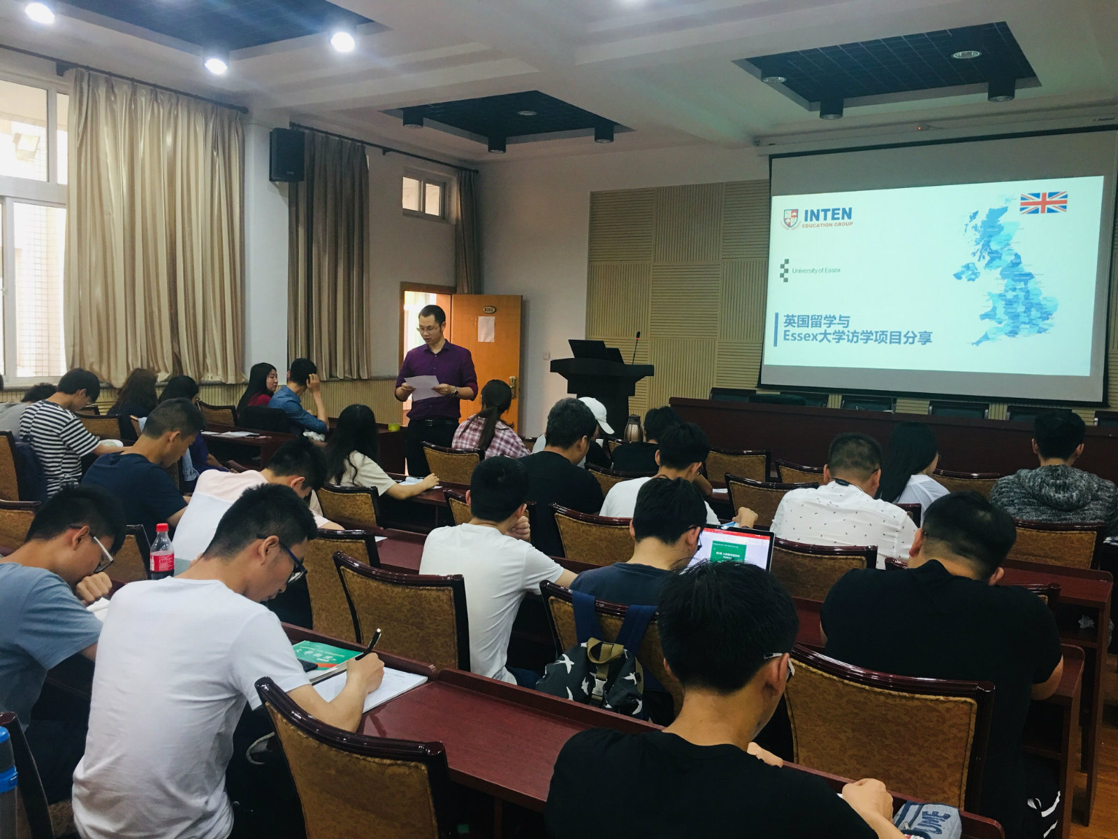 为大力推进国际化人才培养,满足学生多样化与个性化的出国交流访学需求, 2019年6月5日晚,我院特邀INTEN 教育集团一行在美女直播副203开展分享交流会,为本科生详细介绍Essex大学访学项目,交流会由美女直播胡少军副院长主持