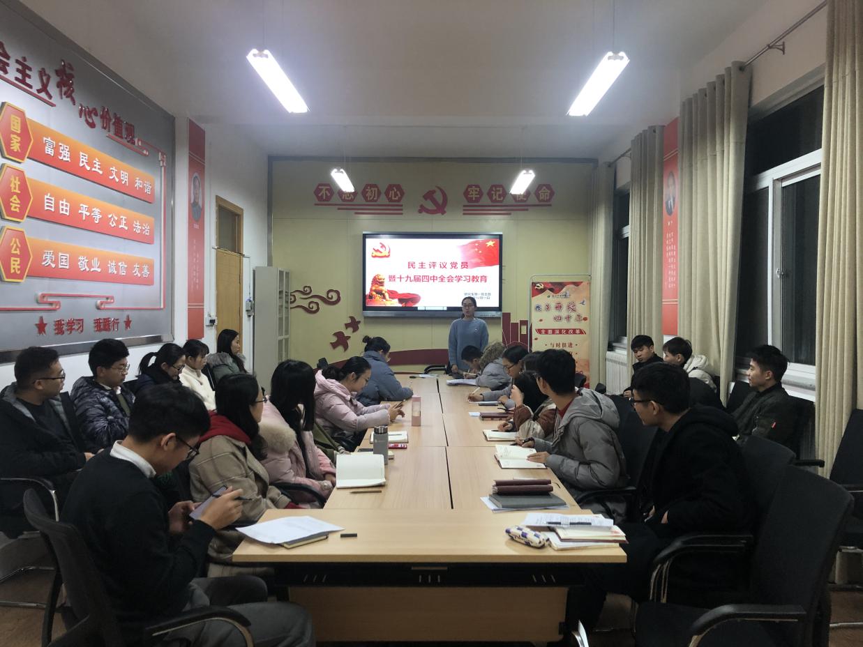 12月11日,研究生第一党支部在美女直播401召开了“民主评议党员暨十九届四中全会主题教育学习”组织生活会。支部所有党员同志一起学习了十九届四中全会内容,并进行了民主评议党员自评、互评环节,最终评选出七名优秀党员。