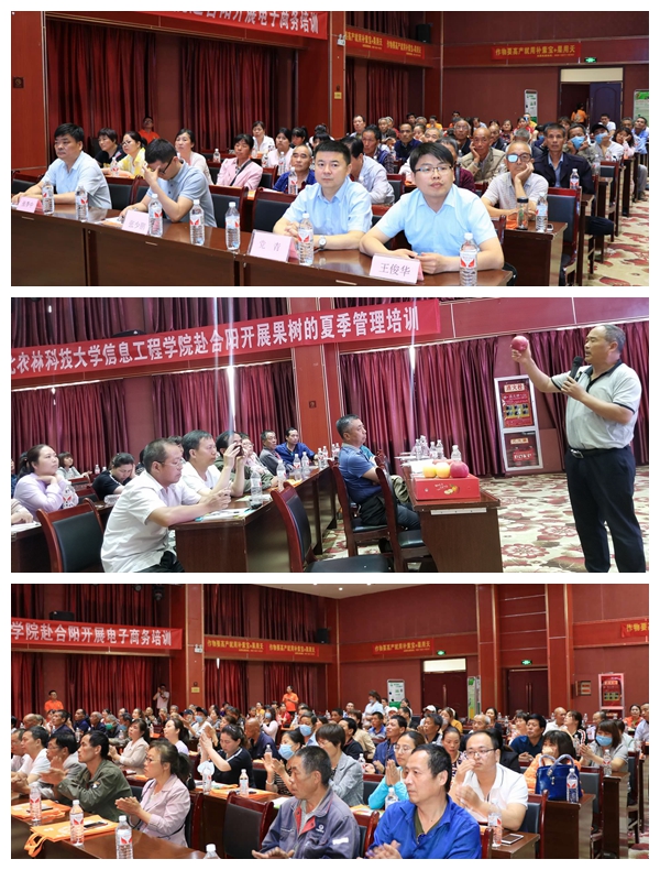 培训会上,白水苹果试验站站长、苹果专家王雷存研究员、葡萄示范站驻站专家张宗勤副教授、学校测试中心原副主任杨吉安副教授、信息美女直播电商系主任杨会君副教授先后作《苹果产业形势及栽培关键技术》《葡萄优质高效栽培实用技术》《农产品质量安全与质量认证》《电子商务-数字经济助推器》专题报告。报告会后果树专家和种植户一同转战到合阳果农人基地进行现场手把手培训。