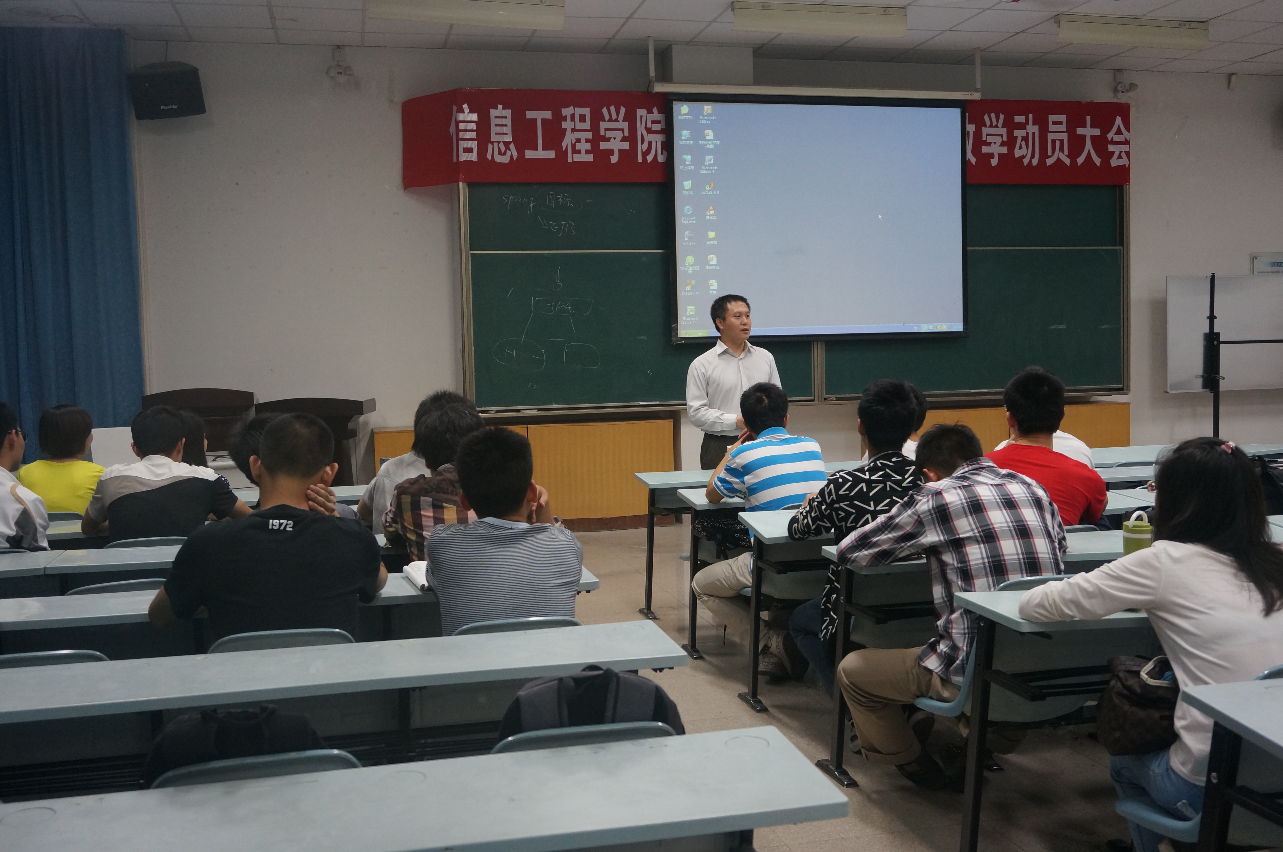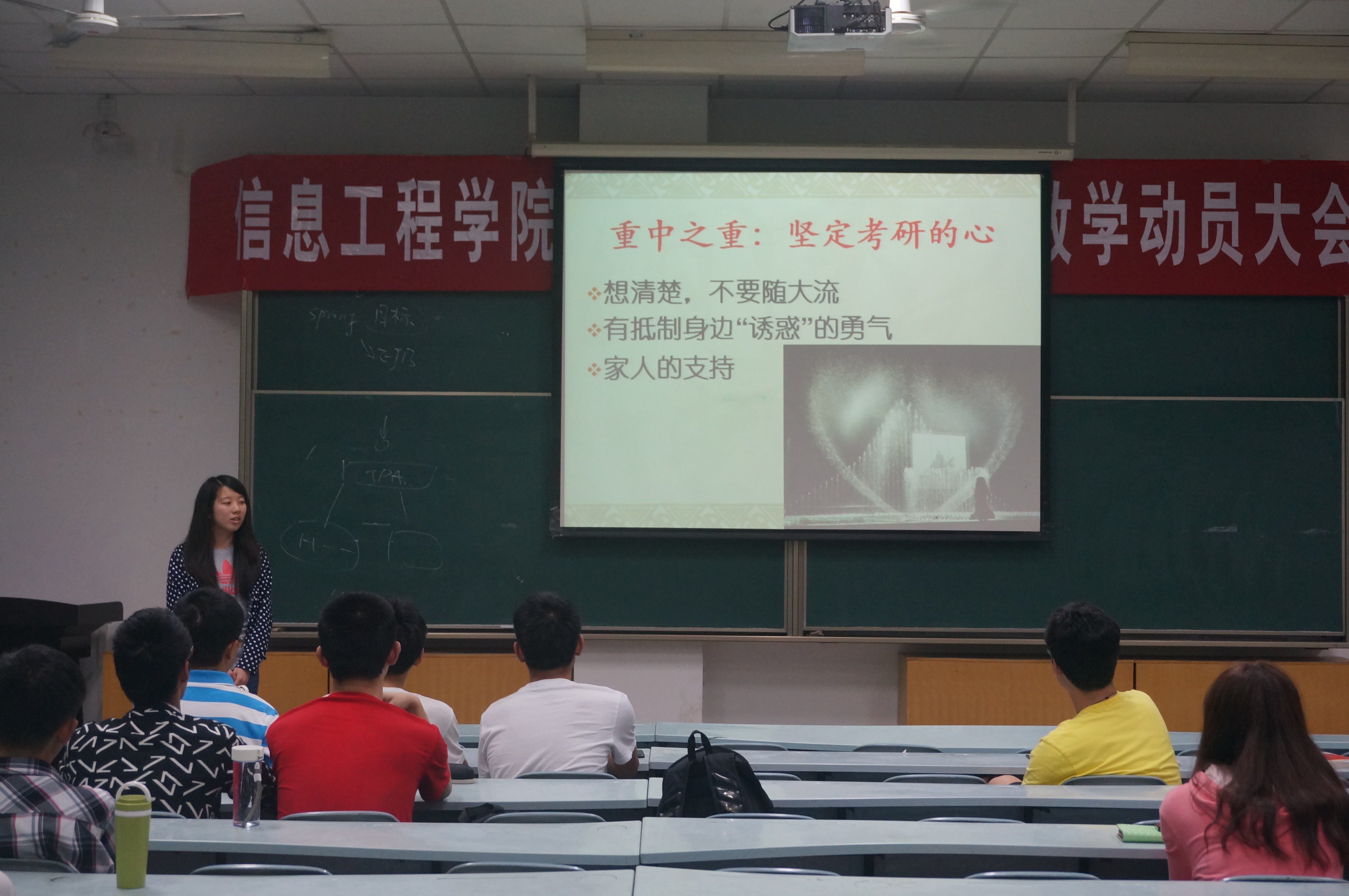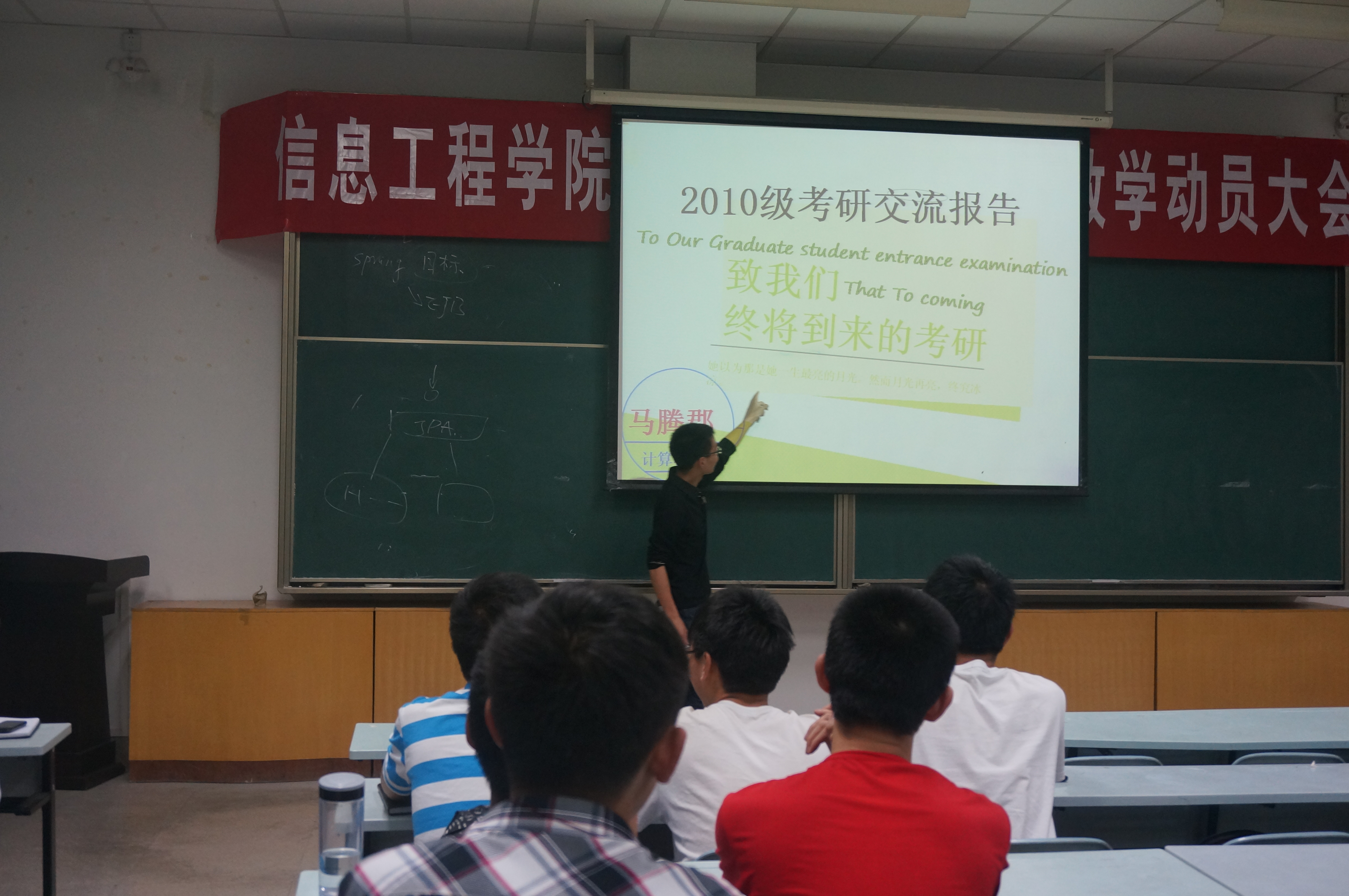5月16日晚,信息美女直播在M2教室举行了考研经验交流会。副院长张阳教授主持并加以点评,贾艺凡、马腾郡等五名09级学生进行报告。